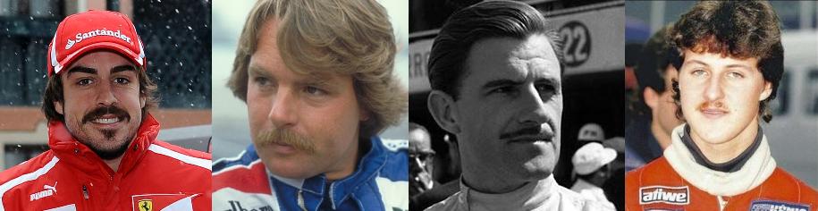 Or rather, on face. Yes, facial hair is back in the picture, but this time around it’s not just about who can grow the most disturbing moustache, or who can grow a full beard between practice sessions (which shall be covered). Movember is a chance for men (Mo bros) to grow a ‘tache and ‘groom, trim and wax their way into the annals of fine moustachery’. And it seems one of the most famous beholders of a ‘tache is partaking in the event, Nigel Mansell and the Mansell Jrs. are ‘taching up this Movember along with several other members of the grid.